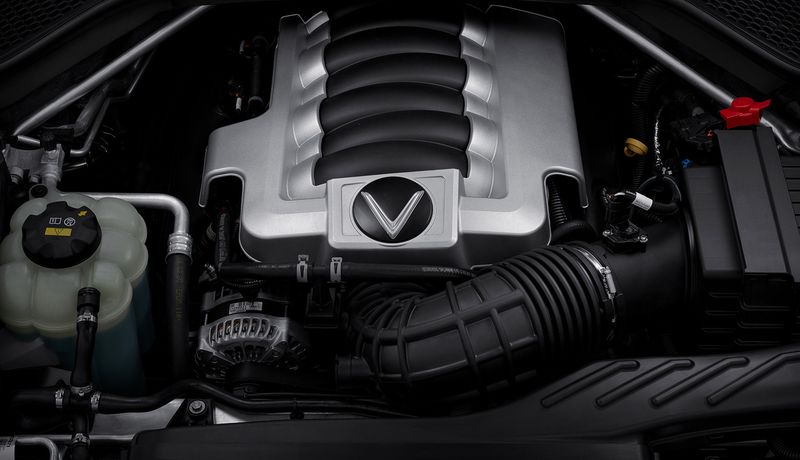Các đường gân nổi dọc hai bên thân xe và trên nắp capo không chỉ mang đến sự khỏe khoắn mà còn giúp tối ưu tính khí động học cho xe. Ở phía sau, VinFast President được trang bị cặp ống xả kép cỡ lớn đậm chất thể thao, hỗ trợ đắc lực cho động cơ V8 vận hành trơn tru và đạt hiệu suất tối ưu.