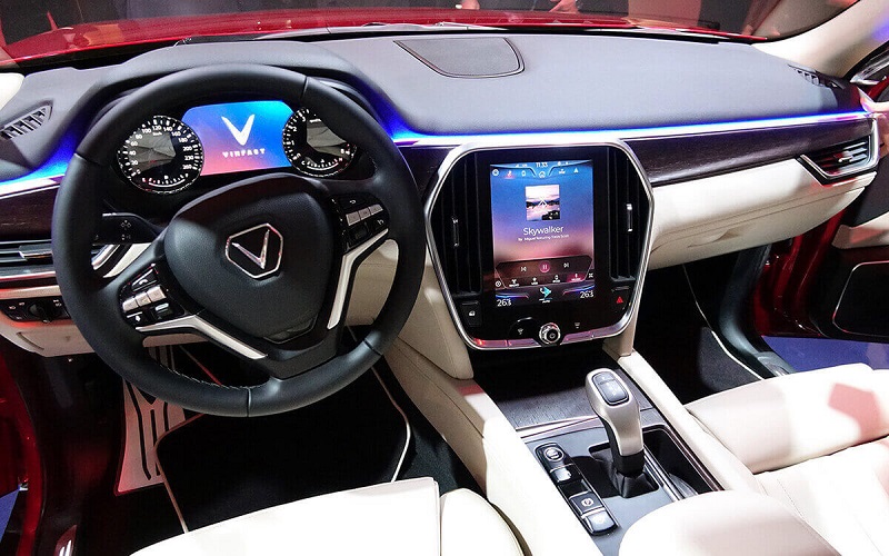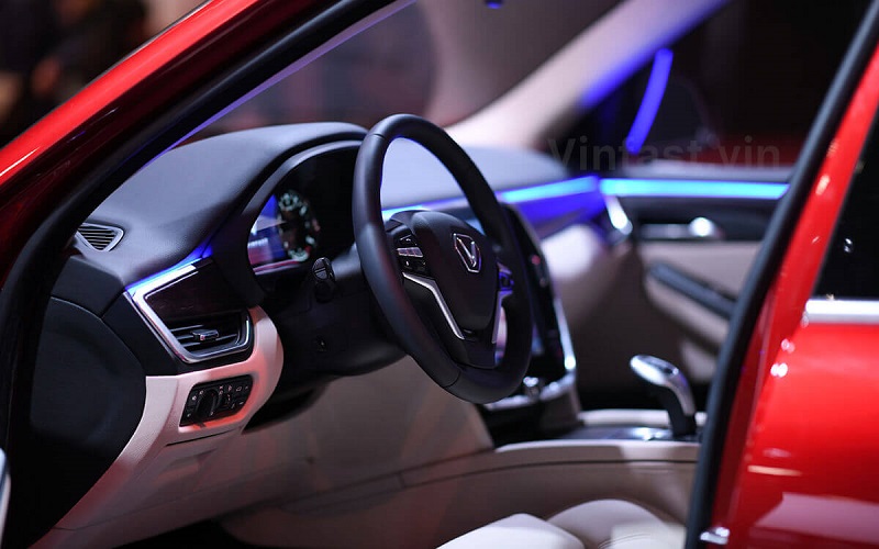 Màu nội thất của VinFast Lux SA 2.0 có 2 lựa chọn màu đen, màu kem taplo ốp hydrographic vân carbon. Là dòng xe cỡ lớn vì thế không gian bên trong SUV Lux SA cực kỳ rộng rãi, thoải mái.